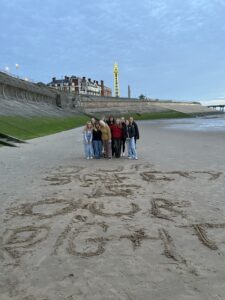 The Young Women’s Social Action Group went to Blackpool Promenade for work on our ‘Our safety is our right’ campaign. The ‘Our Safety is Our Right’ campaign is the UYA trying to achieve safer public transport for young people. Travelling to a nearby a tram stop, we used eco-friendly cleaning products and stencils to leave our message, hoping that travellers far and wide will see this. After this, we went onto the beach and we all worked together to clearly write our message on the sand, reiterating that it is our right to feel safe when using public transport. Our campaign is ongoing, so watch this space!